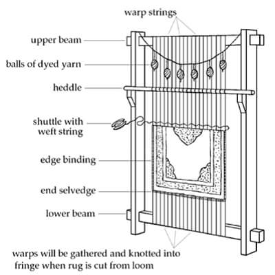 織物技術がいつどこで生まれたか、正確には知られていませんが、おそらく中央アジアに起源があることは疑いようがないでしょう。人口の急増により、中央アジア地区の住民はアジア西部により肥沃な土地を求め移り住みました。この人達はユルック族と呼ばれる遊牧民でした。移民の途中、これらの遊牧民は厳しい天候にさらされ、ヤギの毛を使用してテントを作ることを覚えました。ヤギの毛は羊の毛よりも長く、とても硬いものです。平面織り技術は、遊牧民のテントを作るために使用されました。