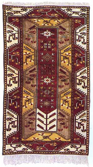 During the time of the Selcuk Empire and before they came to Anatolia, Turks reigned over Iran (Persia) and the Caucasus for several centuries. The art of weaving was introduced to Anatolia by the Selcuks toward the end of the 11th. and the beginning of 12th. centuries when Selcuk sovereignty was at its strongest. In addition to numerous carpet fragments, many of which are yet to be documented, there are 18 surviving carpets which are known to be of Selcuk Origin. The technical aspects and vast variety of designs used proves the resourcefulness and the splendor of Selcuk rug weaving. The oldest surviving Selcuk carpets are dated from the 13th.-14th. centuries. Eight of these carpets were discovered in the Alaeddin Mosque in Konya (capital of Anatolian Selcuks) in 1905 by Loytred, a member of the German consulate staff, and were woven some time between the years 1220 and 1250 at the height of the Selcuks' reign.