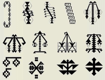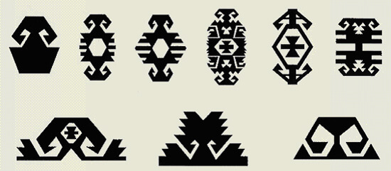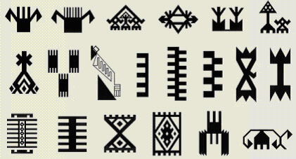 小さな少女の三つ編みから短い固い毛が飛び出るように、織られた布地からもヤギの毛が飛び出し、濡れ、水滴を落とし、平織りの穴からの水分の浸入を防ぐことで、テントはかなりの耐水性を備えていました。その後、遊牧民の人達は、テントの土間の湿気から自らを守る必要性を感じました。そして、この平織り技術を使用し、敷物を作成し「キリム」と呼びました。これらの人々は多神教だったので、ほとんどの平織りデザインは崇拝する神の象徴を表しています。